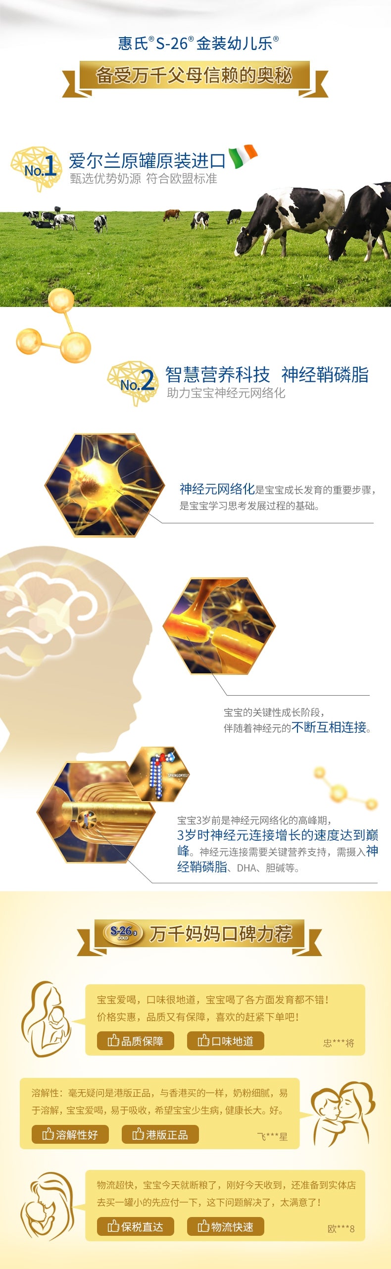 港版惠氏S-26金装婴儿奶粉 1段 2段 3段 4段 900g