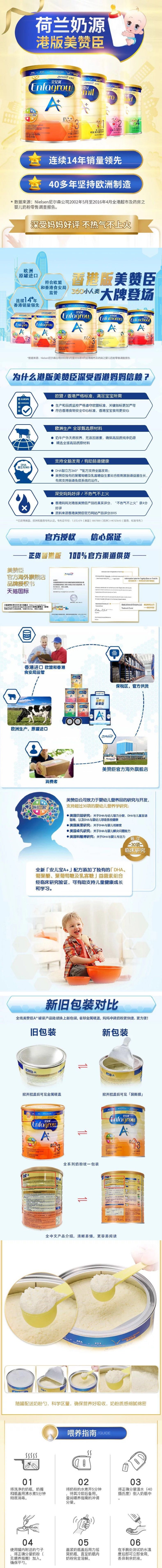 美赞臣香港版婴幼儿进口奶粉 900g 1段 2段 3段 4段 5段