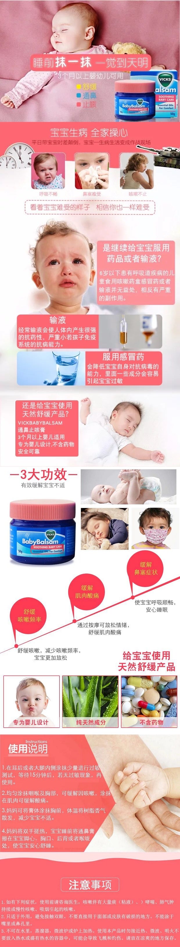 Vicks 鼻塞舒緩膏──瞬間通鼻,恢復暢快呼吸的祕密武器。當你被鼻塞困擾時,只需輕輕塗抹本品,即可感受到溫和而持久的清涼效果,如同清晨森林中沁人的微風拂面,天然香氣喚醒每一個沉悶氣息。無數家庭信賴 Vicks 通鼻膏,其獨特配方有效減輕鼻腔不適,讓您在繁忙生活中依然保持精神奕奕。立即擁有 Vicks 鼻塞舒緩膏,讓阻礙呼吸的不便遠離您,每一次深呼吸都充滿自由與活力!