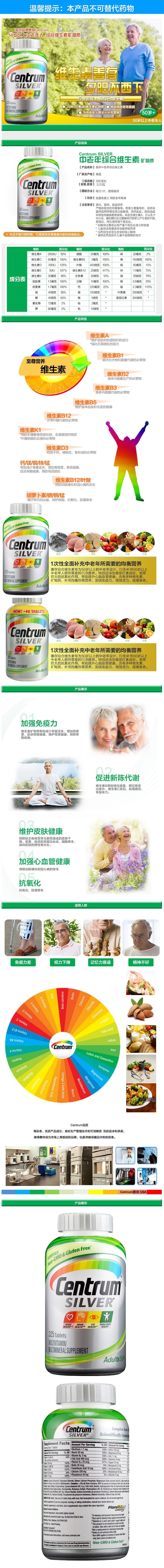 Centrum 美國 銀善存美版50歲以上中老年復合維生素礦物質新版小顆粒 325粒