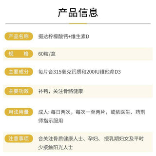 美國進口攝達檸檬酸鈣+維生素D 孕中孕晚期孕婦鈣片 成人補鈣片