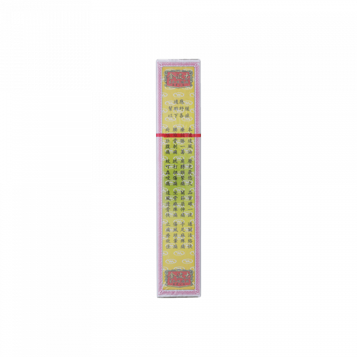 本號追風油,歷史最悠久,品質確一流,通關活絡快,療效勝一籌,肩膊頭緊痛,關節屈伸痛,手足麻痹痛,腰挫骨刺痛,跌打扭傷痛,坐骨麻庳痛,傷風頭暈痛,屙嘔肚腹痛,蚊叮蟲咬痛,追風透骨快,止痛療效佳。