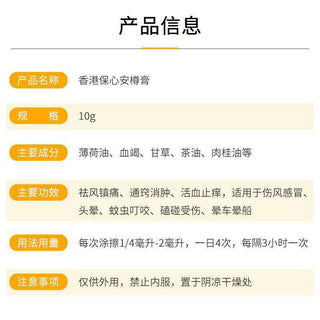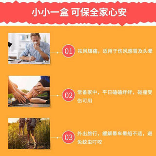 適應癥: 肌肉或顯現疼痛 輕微頭痛,頭暈 風寒引起之輕微肚痛 蚊叮蟲咬引起之痕癢
